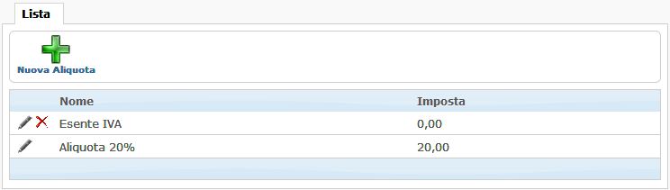 Consente di aggiungere una nuova aliquota d'imposta portando alla scheda